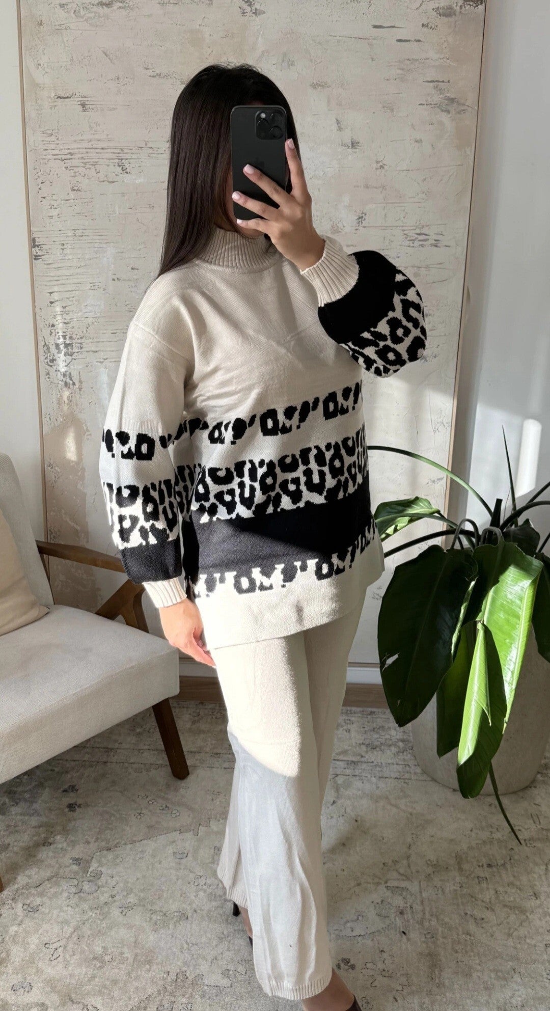 Elegants komplekts ar leoparda rakstu 2in1.Garš džemperis un taisnas bikses tonī - ērts, silts, stilīgs un sievišķīgs.One size, der no 36-48 izmēram.